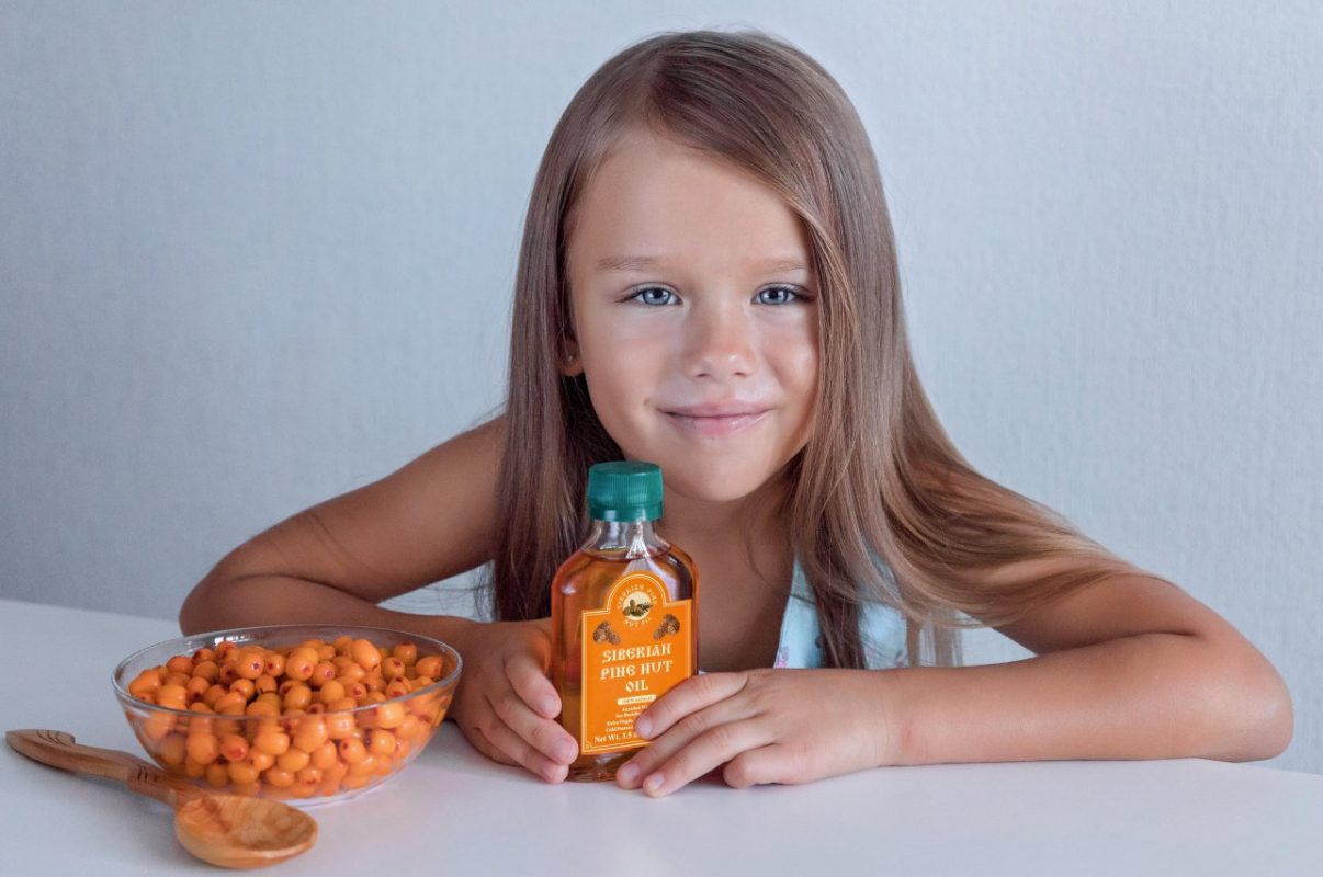 Pine nut oil enriched with sea buckthorn to prepare the organism of adults and children for the cold season